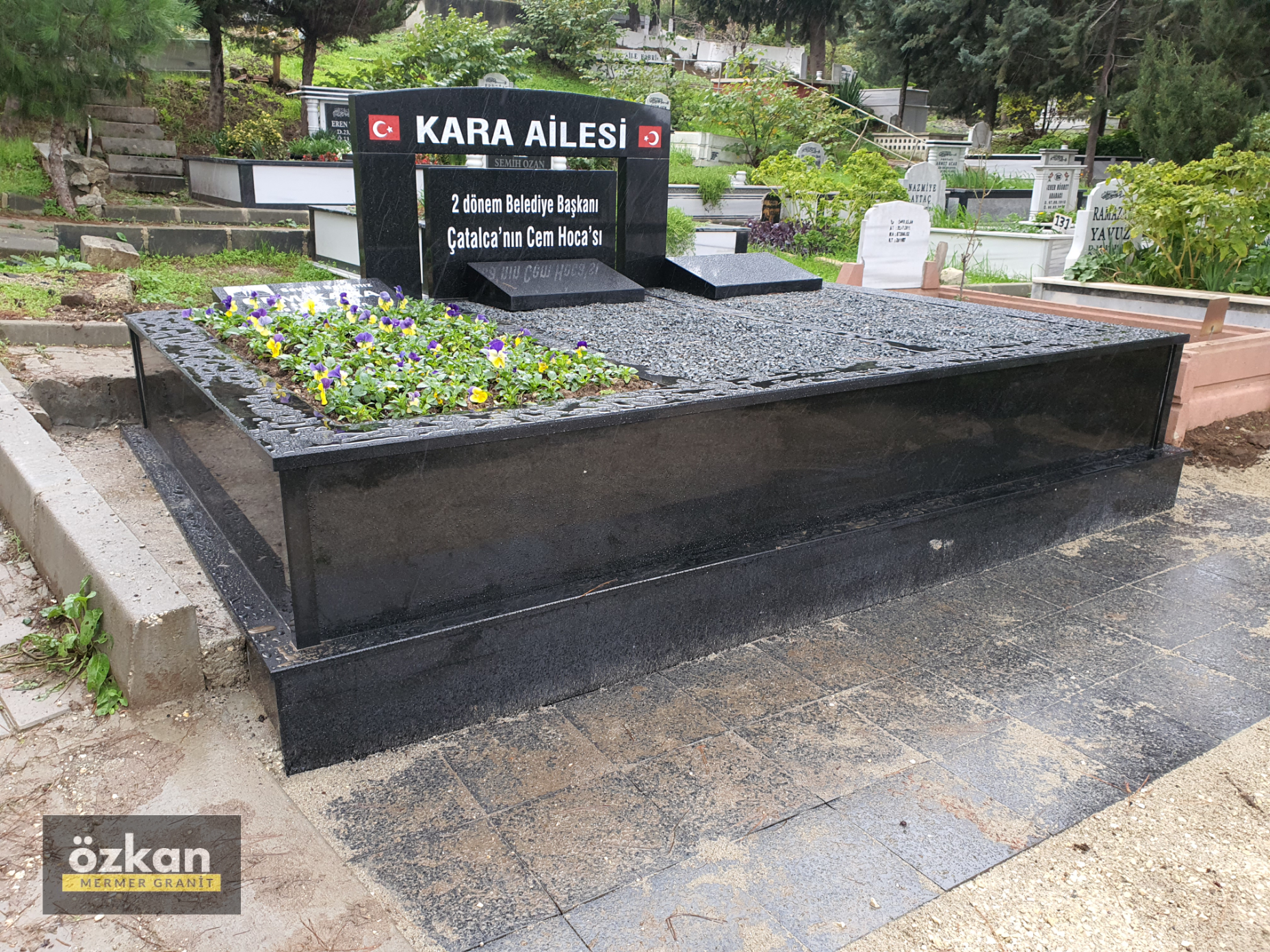 A+11 Granit Kaplama,Özel Kalın Baş Taşlı,3 Kişilik Aile Mezarı