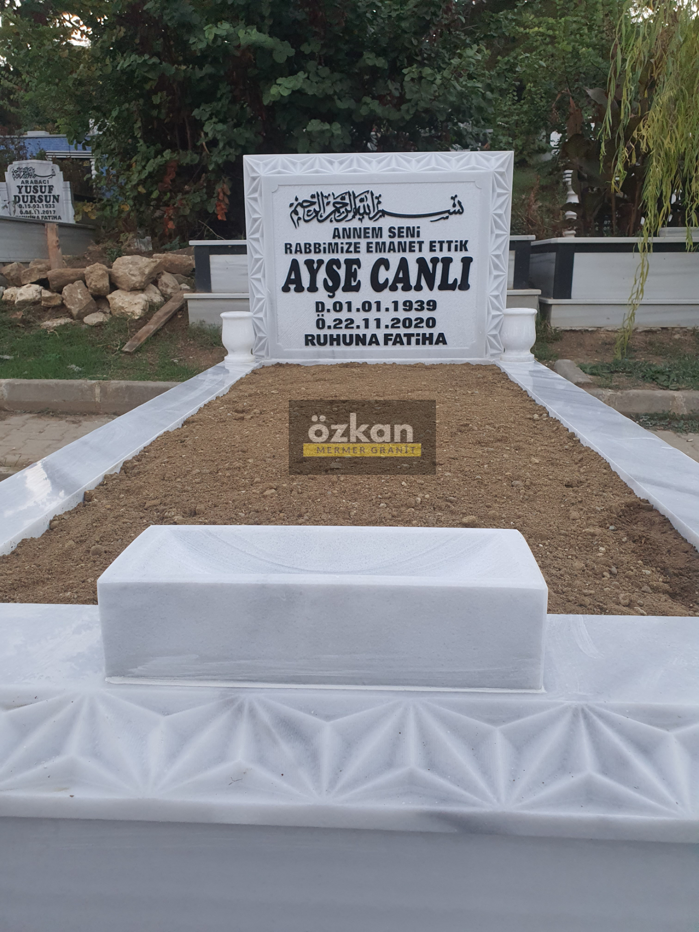 TK-15 Tek Kişilik Küpeşteleri ve Baş Taşı İşlemeli Mezar