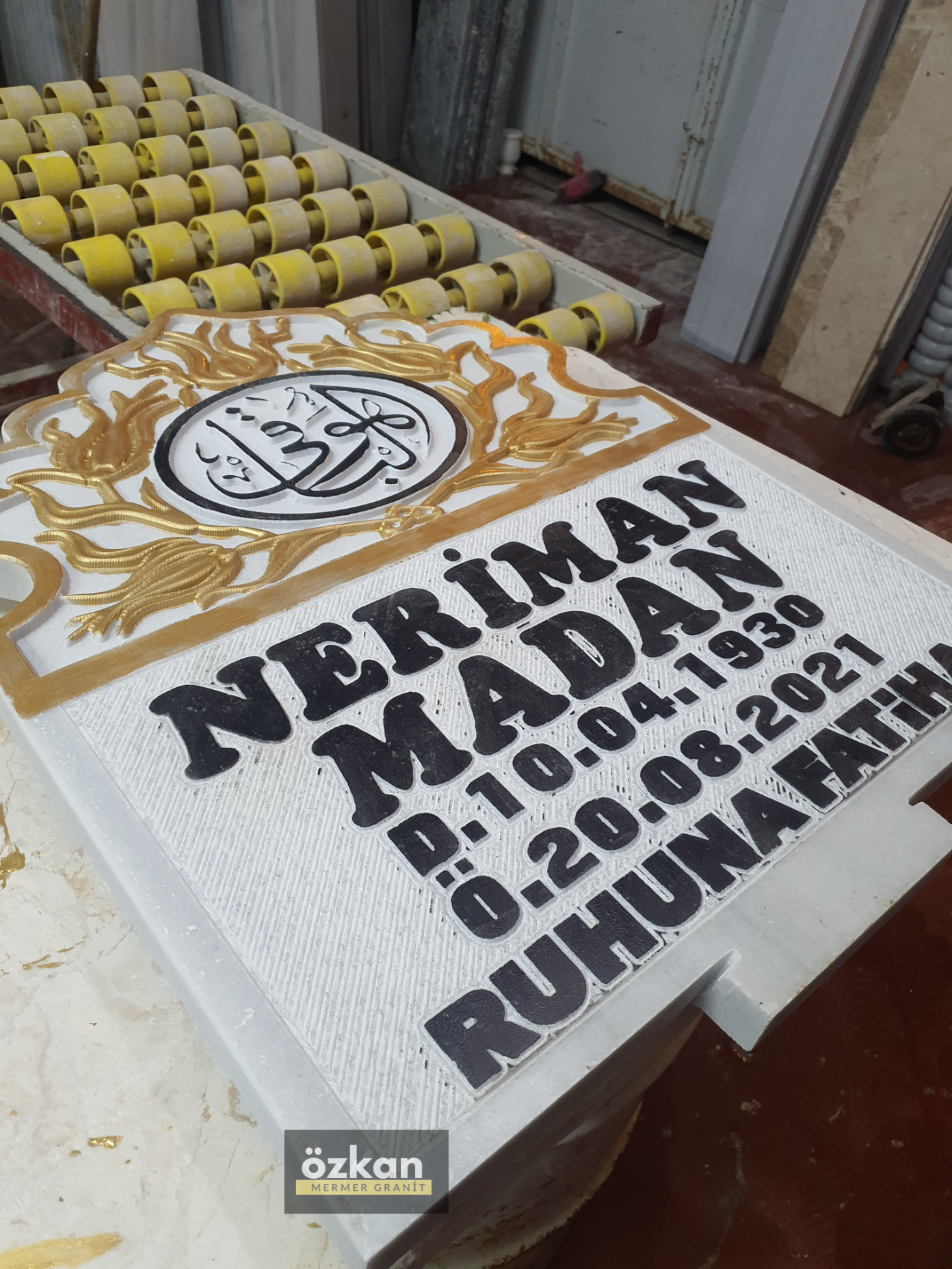 TK-39 Tek Kişilik Siyah Şeritli , İşlemeli Baş Taşlı Mezar